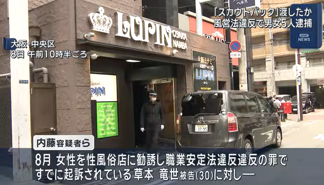 性風俗店で働く女性を紹介してもらった見返りにいわゆるスカウトバックを支払ったとして、大阪・ミナミの風俗店の店舗経営者の男ら5人が逮捕されました。