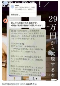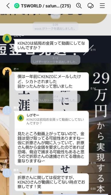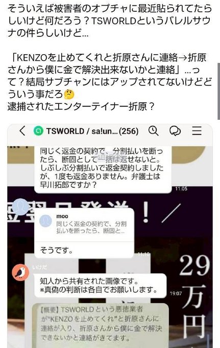 TSWORLDバレルサウナ詐欺事件でZ李の部下の折原がTSWORLDバレルサウナから依頼されて109KENZOの追求を止めさせる