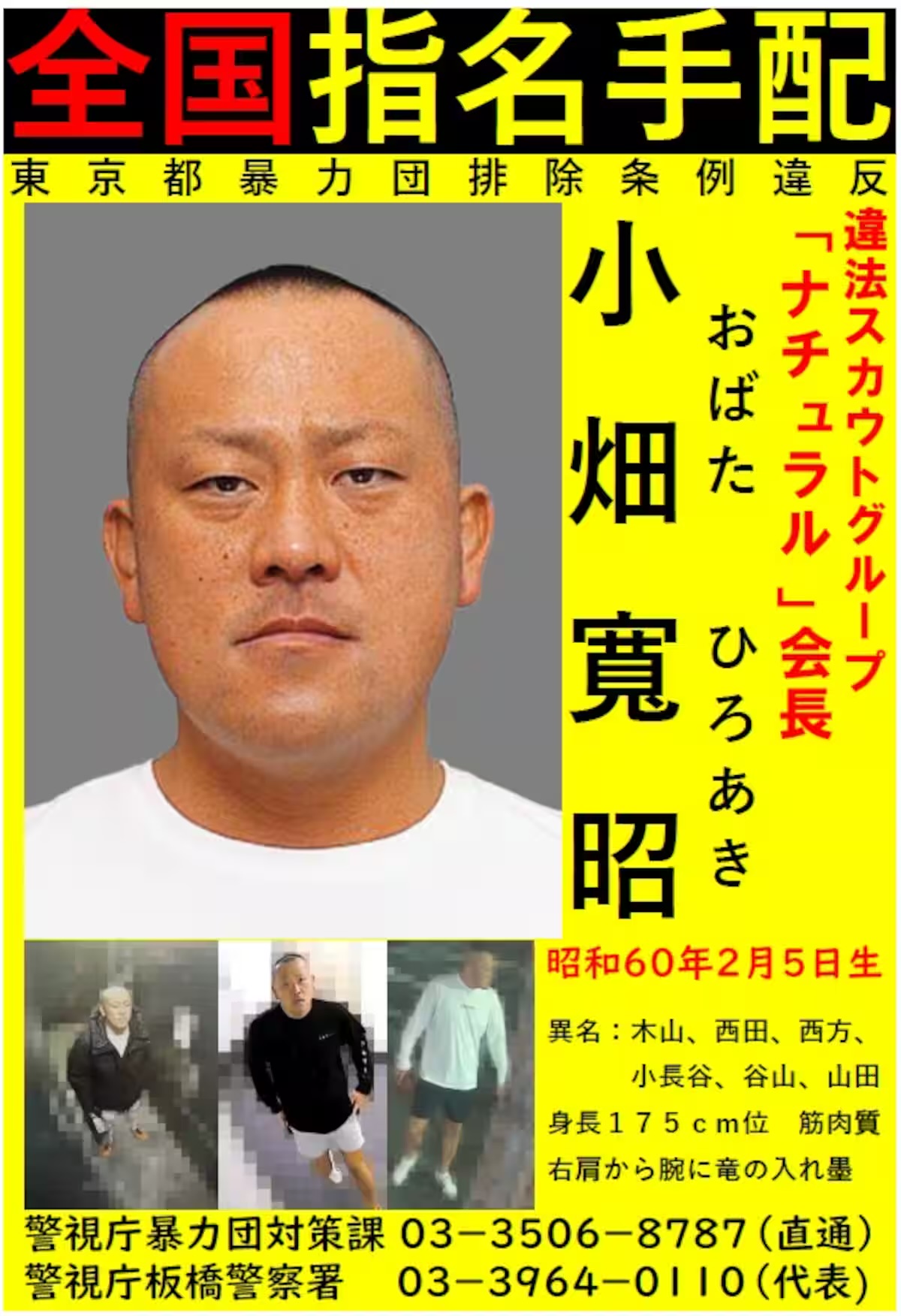警視庁がスカウト会社ナチュラル会長の木山兄弟こと小畑寬昭容疑者(40)を公開手配しました。