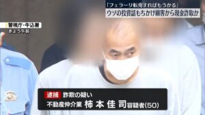 不動産仲介業の柿本佳司が新宿区の女性から4000万円を騙し取ったとして逮捕。