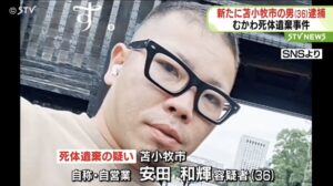 会社役員の大上文彦容疑者(49)=白石区=と渡辺斉容疑者(68)と斉藤朋世容疑者(52)と会社員の梅津悠希容疑者(36)=苫小牧市=と会社員の岡崎勇貴容疑者(37)=苫小牧市=と自営業の安田和輝容疑者(36)=苫小牧市泉町2丁目=が西村隆行さん(55)を殺害してむかわ町の山林に遺棄したとして逮捕されました。