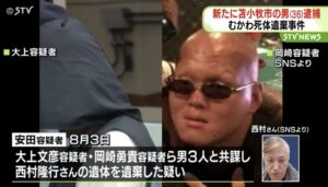大上文彦と梅津悠希と岡崎勇貴と安田和輝ら6人が西村隆行さんを殺害して遺棄したとして逮捕。