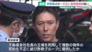 不動産会社SAG代表取締役の属基和と井原智和と松田樹ら3人が特殊詐欺の拠点となっていた高級マンションをウソの情報で不正に借りたとして逮捕。