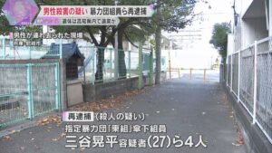 山口組兼一会若頭補佐徳重組組長の徳重願こと徳重流星と東組赤松組組員の三谷晃平ら13人が尼崎市で山口組弘道会関係者を拉致して殺害したとして逮捕。