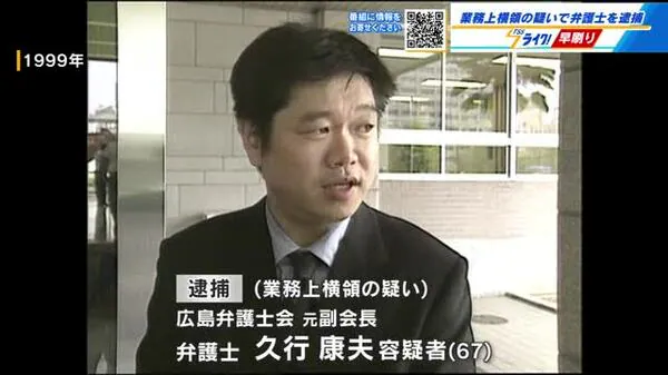 広島弁護士会元副会長で弁護士の久行康夫が顧客の資産を横領したとして逮捕