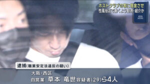 大阪市西区のスカウトの草本竜世と元ホストの高崎祐斗ら4人がホストクラブに売掛金がある女性を風俗店に紹介したとして逮捕