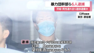 山口組落合金町連合椛沢組副長の工藤良太郎こと臼井良ら6人が釈迦憎グループの松永淳さんを殺害して遺棄したとして逮捕