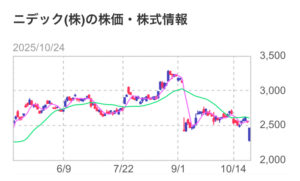 ニデックは他にも自社株買いを実施したと発表して本当は自社株買いをしていなかったのではないか疑惑や売上や利益の数字は正しいのかという疑惑や税金逃れ疑惑などがあり、上場廃止の可能性もあることから株価は大きく値下がりしていました。