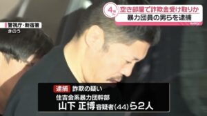 住吉会幸平一家幹部の山下正博と組員の岩切博信が特殊詐欺で騙し取ったお金を空き部屋に送らせたとして逮捕