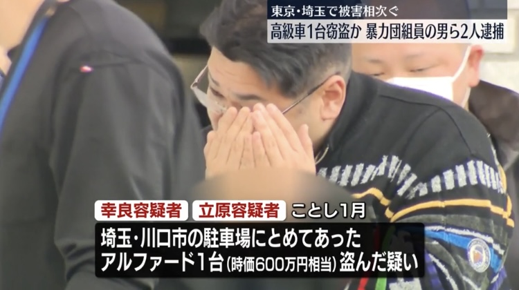トヨタのアルファード1台、時価600万円相当を盗んだとして、暴力団組員の男ら2人が逮捕されました。