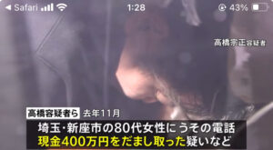 逮捕容疑は24年11月8日ごろ、埼玉県新座市の80代女性に、銀行協会職員に成り済まして「あなたの口座から他の口座に現金が送金されている」とうその電話をかけ、キャッシュカード4枚を受け取り、現金400万円をだまし取るなどした疑いです。