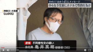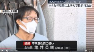 警察によりますと、逮捕された亀井英明容疑者(36)はことし8月、神奈川県大和市のホテルで小学6年生の女子児童に性的な行為をした疑いがもたれています。