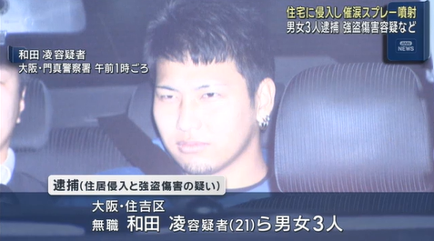 大阪市住吉区に住む無職の和田凌容疑者(21)ら男女3人は先月31日の夜、門真市の住宅に侵入し、住人の40代の夫婦に暴行を加えて金品を奪おうとした強盗傷害などの疑いで逮捕されました。