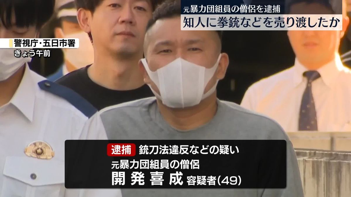 警視庁は元暴力団組員で僧侶の開発喜成容疑者(49)=福島県郡山市大槻町=を銃刀法違反(拳銃と実包の有償譲渡)などの容疑で逮捕しました。