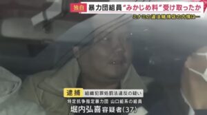 山口組弘道会野内組組員の堀内弘喜が違法パチスロ賭博店からみかじめ料を受け取っていたとして逮捕