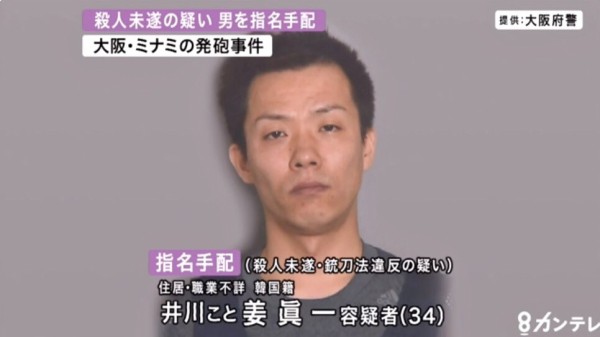 韓国籍の井川眞一こと姜真一がミナミの賭博店で従業員に発砲して大けがを負わせたとして懲役28年の判決
