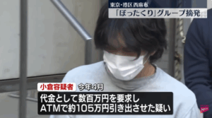逮捕容疑は4月23日、港区西麻布1丁目のレンタルルームに20代男性を誘い出して飲み食いさせ、高額な代金を請求。