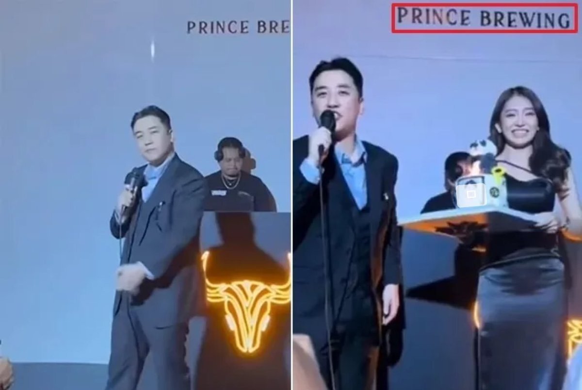 VIことスンリの後ろにプリンスグループ傘下のPRINCE BREWINGの文字が見えました。