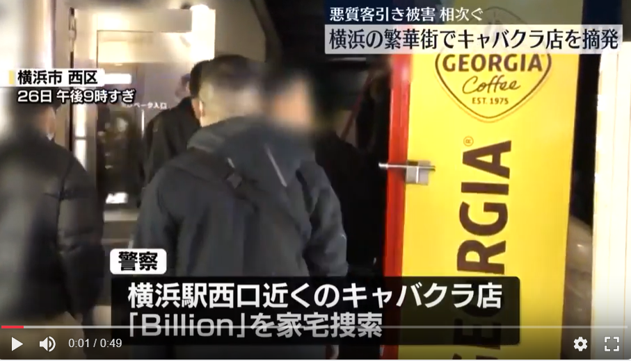 横浜駅西口のぼったくりキャバクラ店「Billion」を摘発。