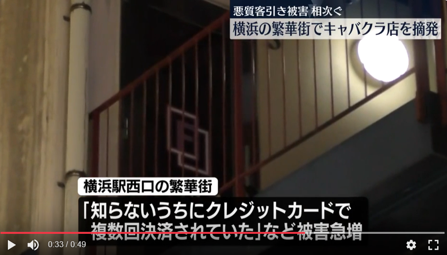 神奈川県の横浜駅近くの繁華街で、悪質な客引きやぼったくりの被害が相次いでいることを受け、警察は26日夜、駅近くのキャバクラ店を摘発しました。