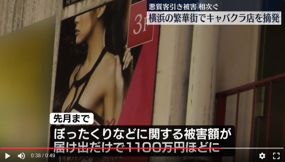 横浜駅西口の繁華街では「客引きがしつこい」「知らないうちにクレジットカードで複数回、決済されていた」などと訴える被害が急増していて、ぼったくりなどに関する被害額は届け出だけで先月までに1100万円ほどにのぼっているということです。