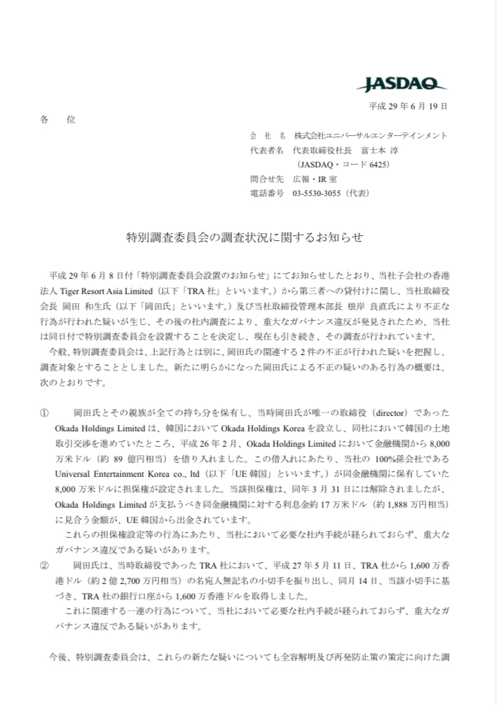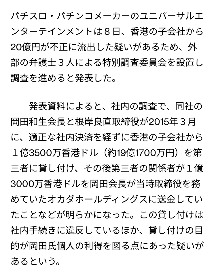 根岸良直さんはユニバーサル(旧アルゼ)時代にガバナンス違反がありました。