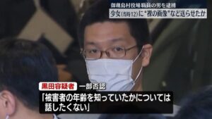 御蔵島村役場職員の黒田正太郎が少女にわいせつ画像を送らせたとして逮捕。