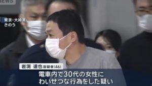 警視庁によりますと、岩淵達也容疑者(46)は先月6日、東京・品川区のJR大崎駅近くを走る湘南新宿ラインの車内で、30代の女性にうしろから体を押しつけるなどのわいせつな行為をした疑いがもたれています。