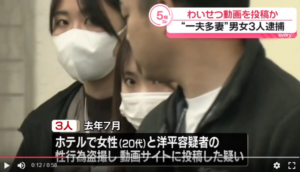 20代の女性との性行為を盗撮し、動画サイト「マイファンズ」に投稿したとして男女3人が逮捕されました。