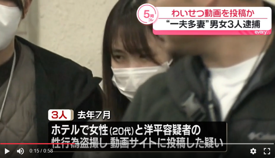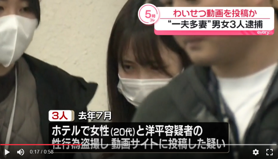 20代の女性との性行為を盗撮し、動画サイト「マイファンズ」に投稿したとして男女3人が逮捕されました。