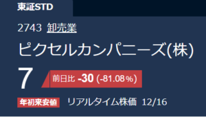 そしてピクセルカンパニーズは東証から上場廃止を言い渡されました。
