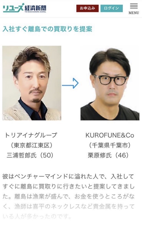 栗原修さんは貴金属買い取りグループのトリアイナグループ社長の三浦哲郎さんの部下でした。