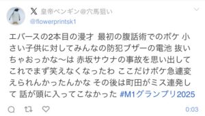 M1グランプリに出場していたエバースに批判が殺到していました。