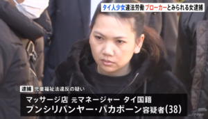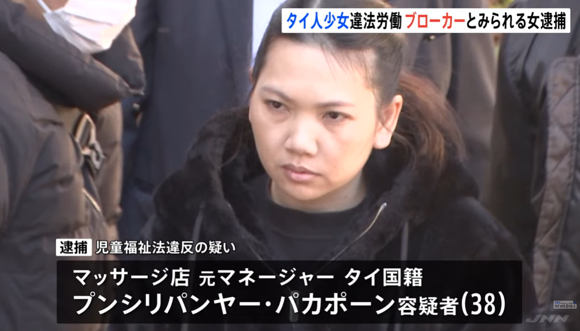 タイ国籍のプンシリパンヤー・パカポーンが文京区の個室マッサージ店に12歳の少女を紹介したとして逮捕。