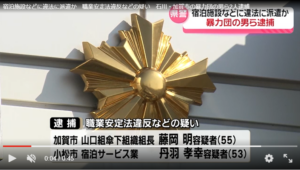 山口組三代目一会舎弟頭補佐・卵辰組組長の山口外喜範と会社役員の山口悠人が経営する土木会社の社員3人を健康保険に加入させなかったとして逮捕(北陸放送)