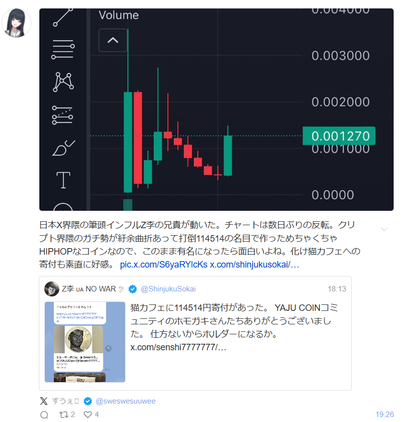 しかしこれは作られたストーリーで、野獣コインの立ち上げから猫カフェへの寄付、Z李の参戦まですべて仕組んでやっていると思います。