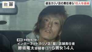 堺市堺区のインターネットカジノ店「ピーチ」を摘発。山口組秋良連合会早崎会幹部の浅沼正稔ら6人を逮捕。