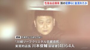 店長の川本俊輔容疑者(48)と田中和貴容疑者(38)と岩井亮容疑者(47)と山寺雄矢容疑者(46)ら4人を逮捕しました。