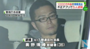 警視庁によりますと、奥野容疑者らは個人情報を勝手に流出させる機能が付いた、アンドロイドのスマートフォン向けの不正アプリをインターネット上に公開し、ダウンロードした人の電話帳やメールアドレスを外部サーバーに送信させた疑いがもたれています。