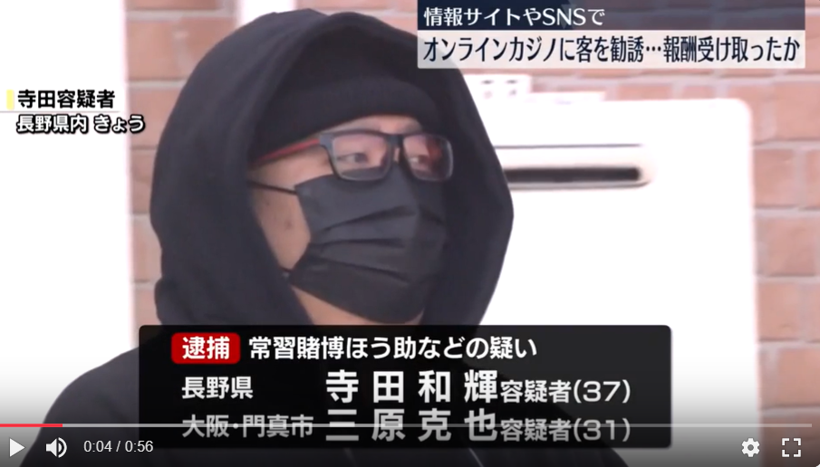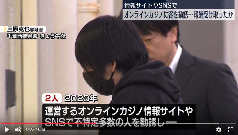 三原克也と寺田和輝がオンラインカジノサイトを紹介したとして逮捕。