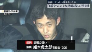 恐喝の疑いで逮捕されたのは、渋谷区の姫木虎太郎容疑者(22)です。