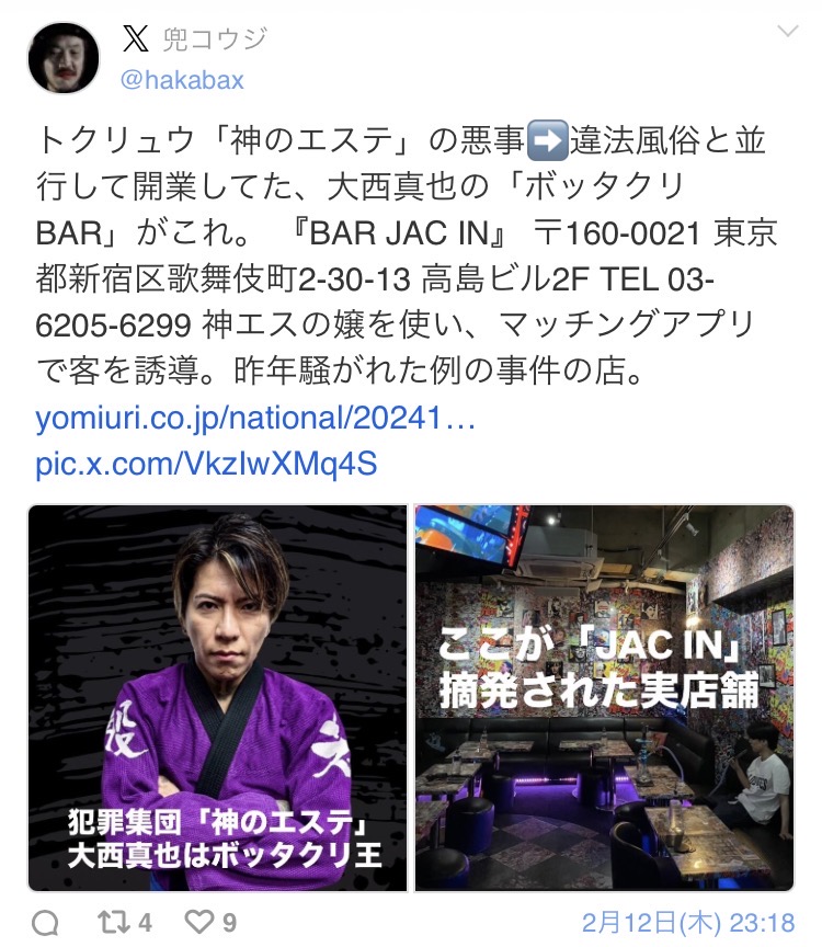 兜コウジはルフィ事件や連続強盗事件のリクルーターが神のエステの関係者であると指摘しています。