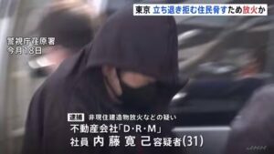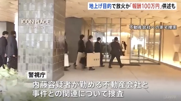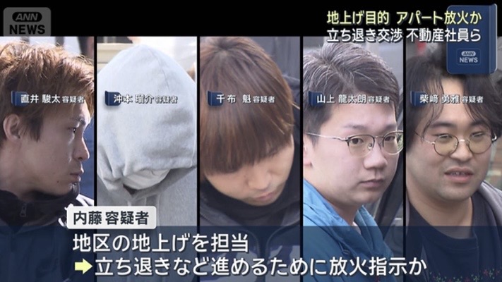 不動産会社DRM社員の内藤寛己ら6人が地上げのためにアパートを放火したとして逮捕。