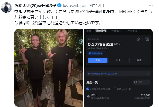 造船太郎は松浦グループの仕手筋のウルフ村田と共にSVNの嵌め込みを行っていました。