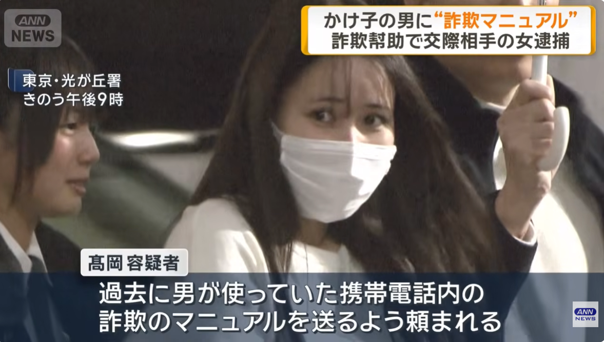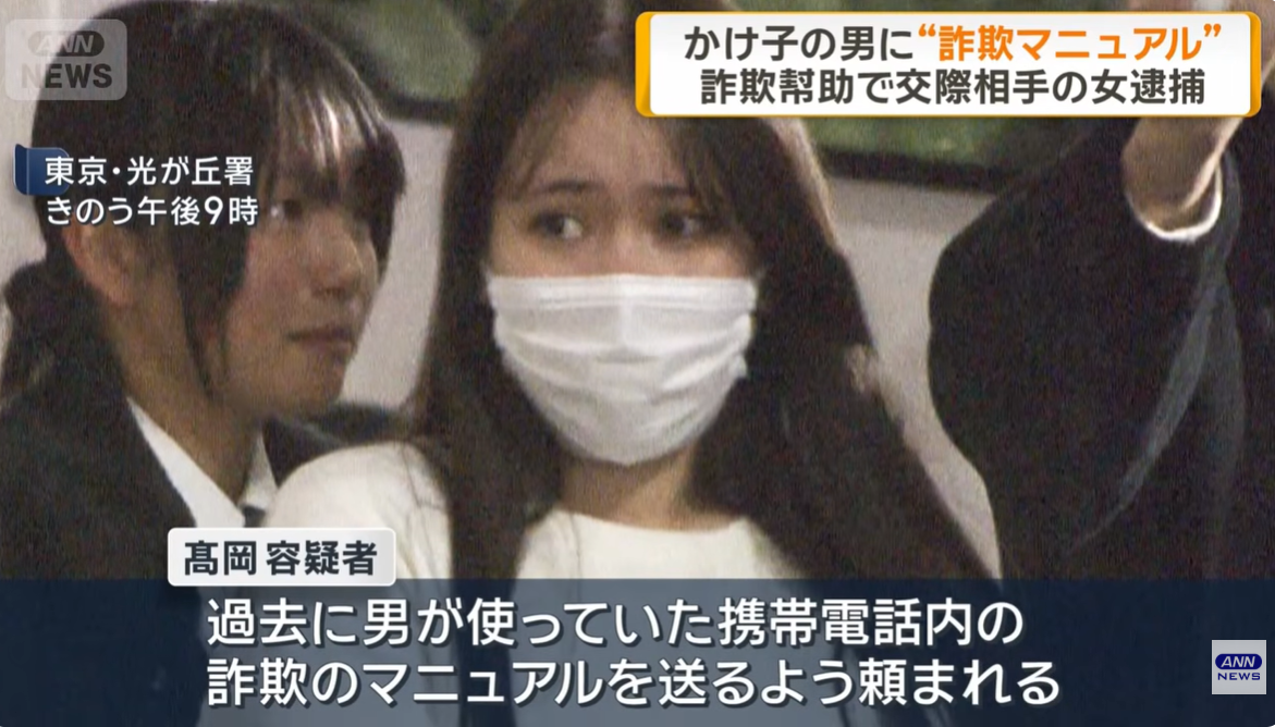 高岡莉優が特殊詐欺のマニュアルを送り詐欺を幇助したとして逮捕。