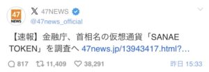 松浦グループが発行している高市早苗総理の仮想通貨サナエトークンに金融庁が調査