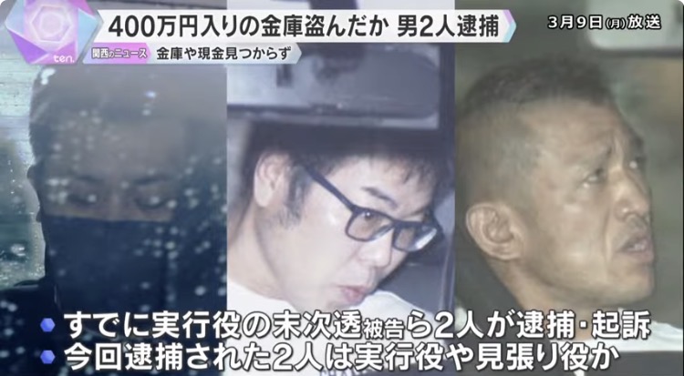 荒木力と中田誠と末次透が金庫を盗んだとして逮捕