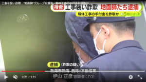 手付金を支払い、工事を請け負うと思っていた会社が、解体工事が存在しないことに気づき、警察に相談して事件が発覚しました。