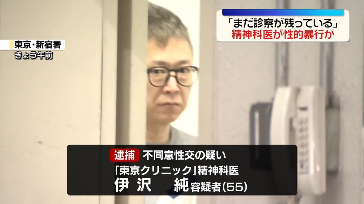 警視庁によりますと、歌舞伎町の「東京クリニック」を経営する医師の伊沢純容疑者(55)=新宿区=は去年8月、クリニックの中で、20代の女性に性的暴行を加えた疑いがもたれています。