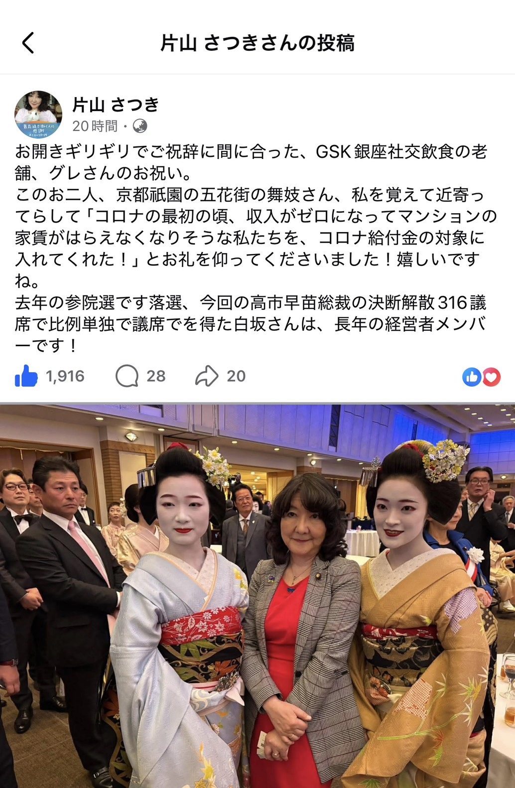 最後の締めの挨拶は自民党の片山さつき財務大臣でした。